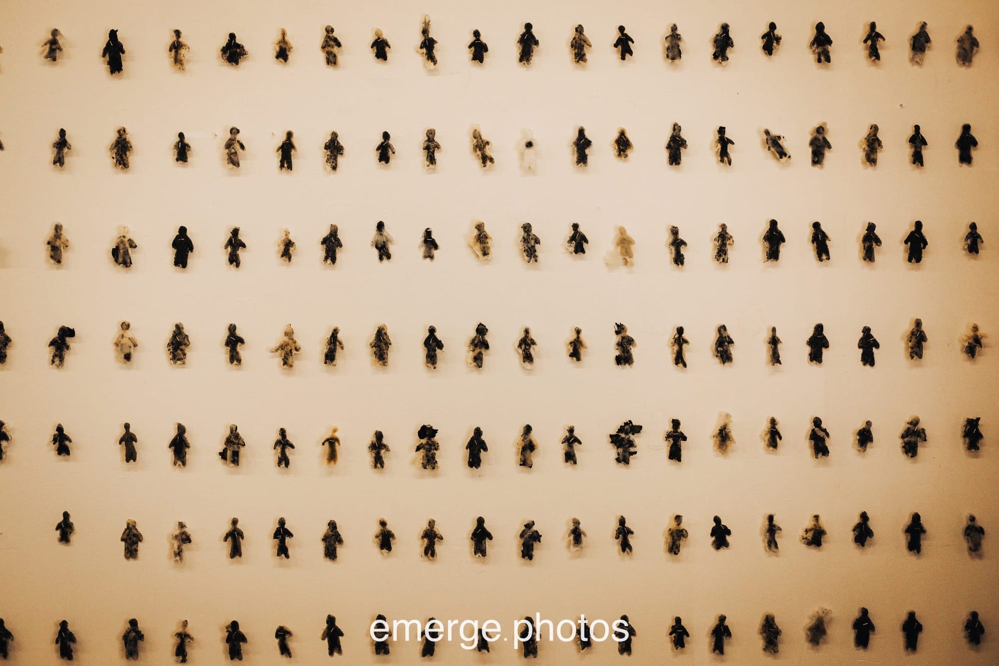 Similarly, “Dangerous Times” by Charlie Reynolds, a trans and disabled artist from Michigan, remembers Vanessa Guillén, the young Tejana soldier assaulted and murdered at Fort Hood in Killeen, Texas as a way of grappling with his own personal history of assault in the military. In a chilling display, the artist’s service record anchors a netting woven from torn and stretched underwear.