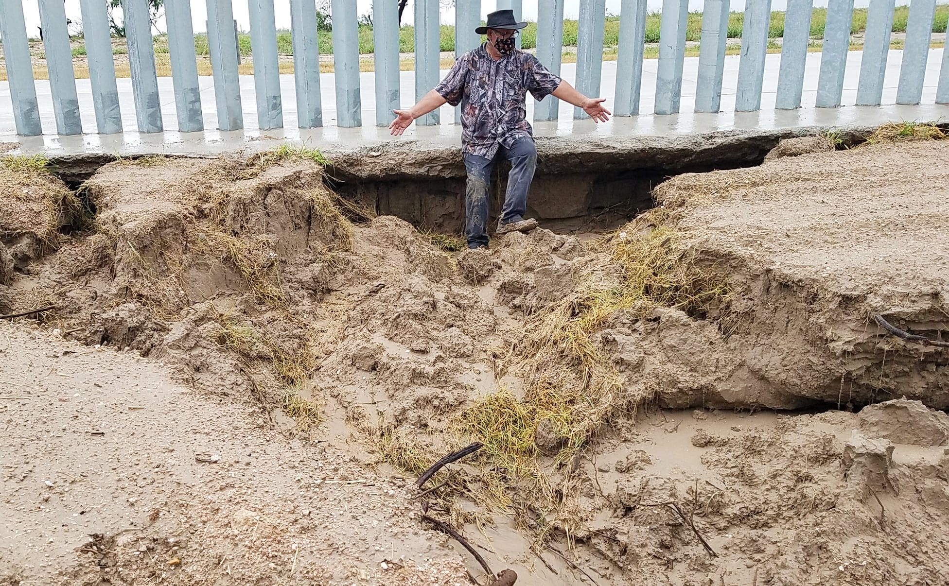 In the summer of 2020, Hurricane Hanna dumped about 15 inches of rain into the area, leaving waist-deep cracks on the banks of the Rio Grande along parts of the fence, which threatened the structural integrity of the project, experts told ProPublica and the Tribune at the time. Fisher, the CEO who put more than $40 million of his own money into the project, told ProPublica and the Tribune that erosion was expected given the amount of rainfall.