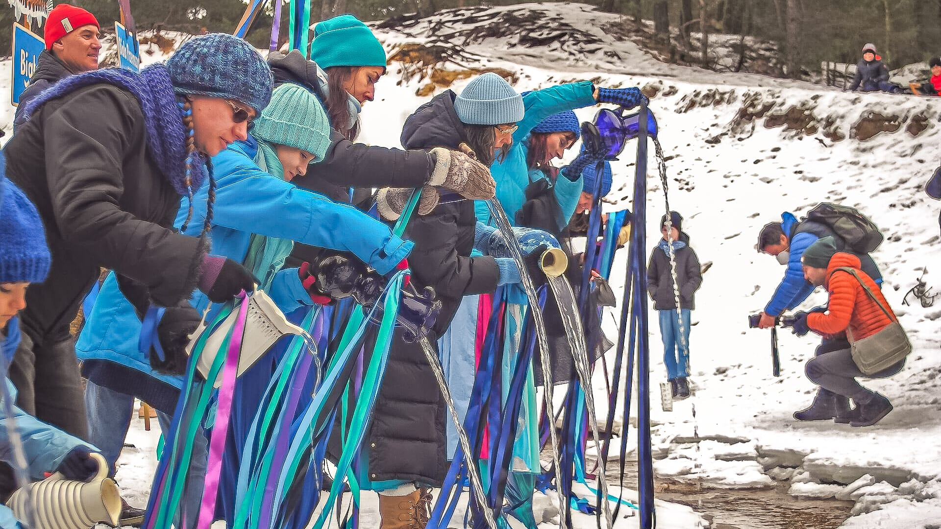 The Rivers use playfulness, costumes, and other femme aesthetics to celebrate rivers, and ritual to mourn attacks on nature, highlighting the way capitalism partitions waterways and isolates us from their splendor and connection to us. Here Przybylo quotes from Tatyana Bakhmetyeva, who writes that the Rivers “[raise] people’s awareness about the social, ecological, and cultural values of unimpeded river flows.”