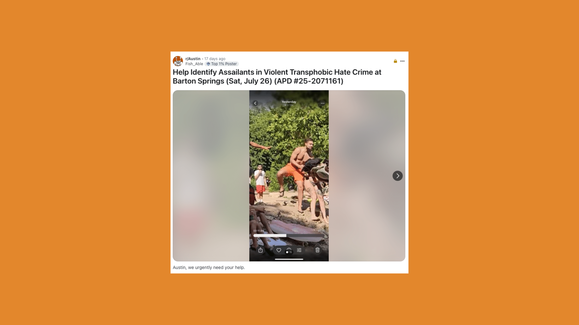 On July 26, 2025, an apparent transphobic attack took place at Barton Springs, Austin’s world-famous freshwater spring-fed swimming hole, leaving multiple injuries including a hospitalized “Good Samaritan.”