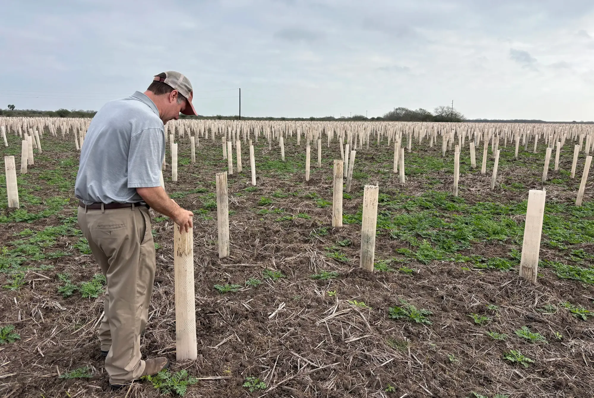 Hoping to evade this fate with its restored thorn forests, American Forests has created a playbook of “climate-informed” planting. The six tips include shielding seedlings inside polycarbonate tubes, which ward against strong winds and hungry critters while mimicking the cooler conditions beneath tree canopies. They look a bit weird — a recent project at Laguna Atascosa National Wildlife Refuge features about 20,000 white cylinders lined up like tombstones — but seedling survival rates shot up as much as 90 percent once American Forests adopted the technique a decade ago.