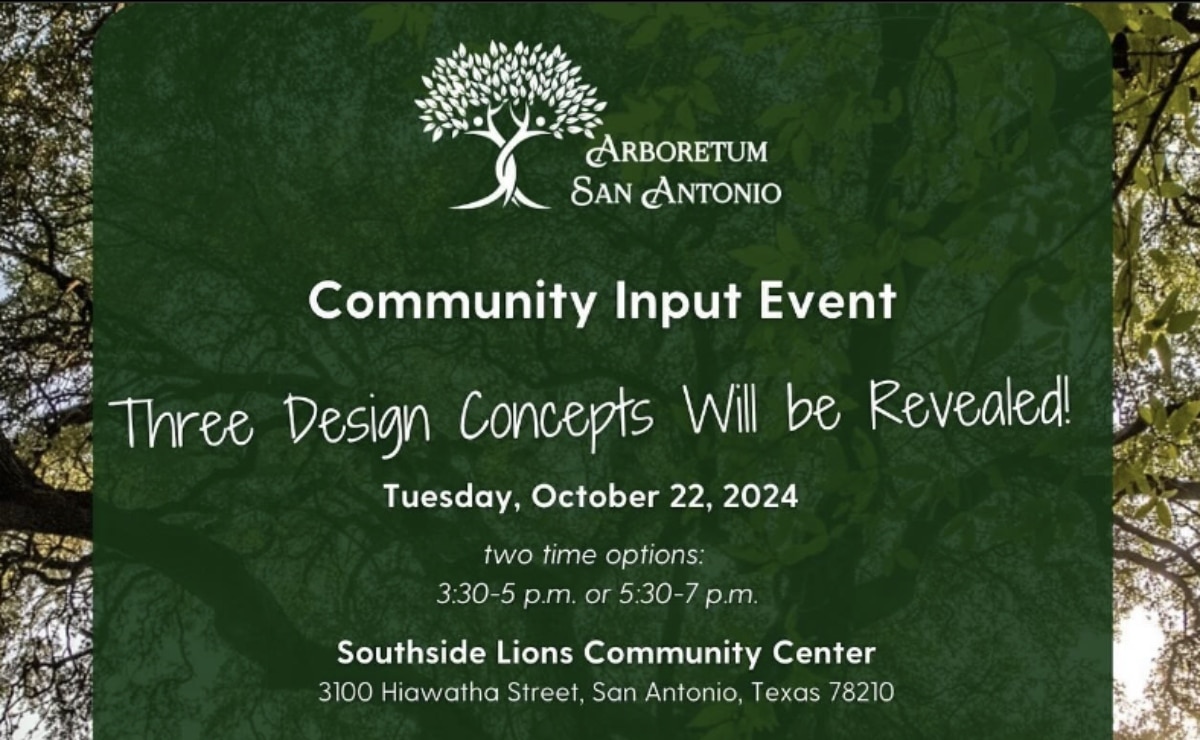 Join the District 3 Office of Phyllis Viagran for a public input meeting regarding the Arboretum San Antonio. This is the second of three large-scale community input events. Come view the three unique design directions for the arboretum and offer your feedback. This is a critical step in the design creation.