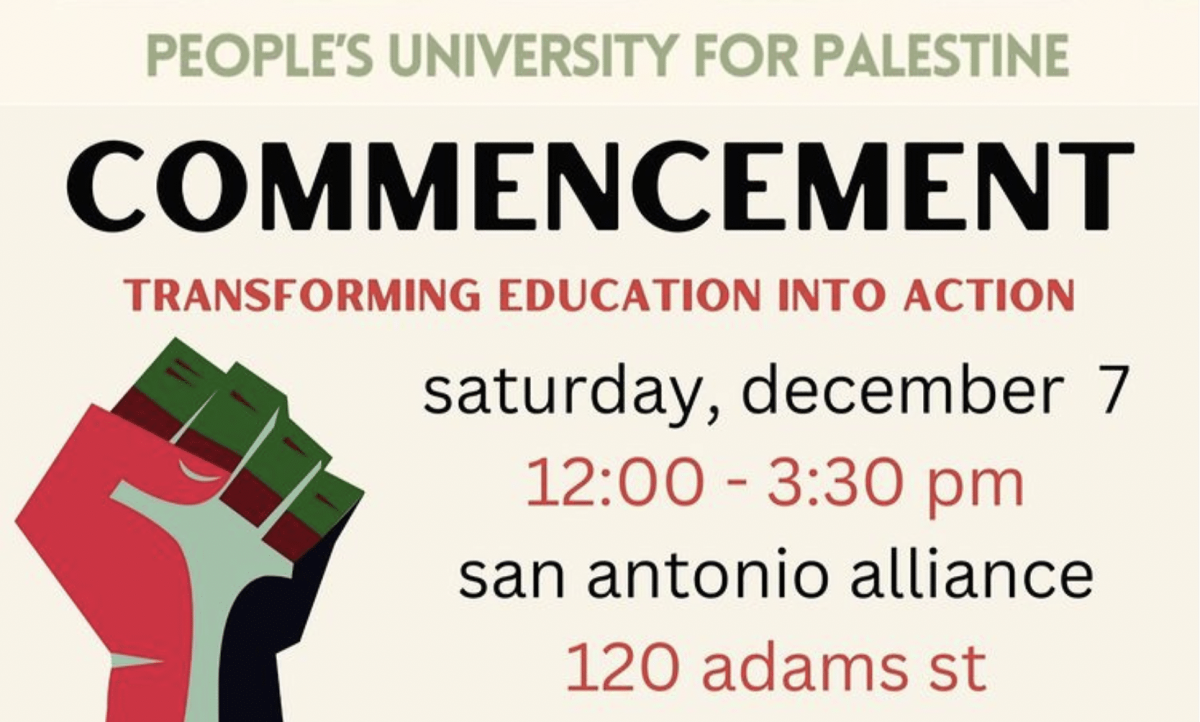 We are nearing the end of our semester and want to commemorate that with you! Please join us at the San Antonio Alliance (120 Adams Street) at noon on Saturday, December 7, for an end of semester “commencement.” The commencement will be a chance to turn our education into praxis, to transform knowledge into action, […]