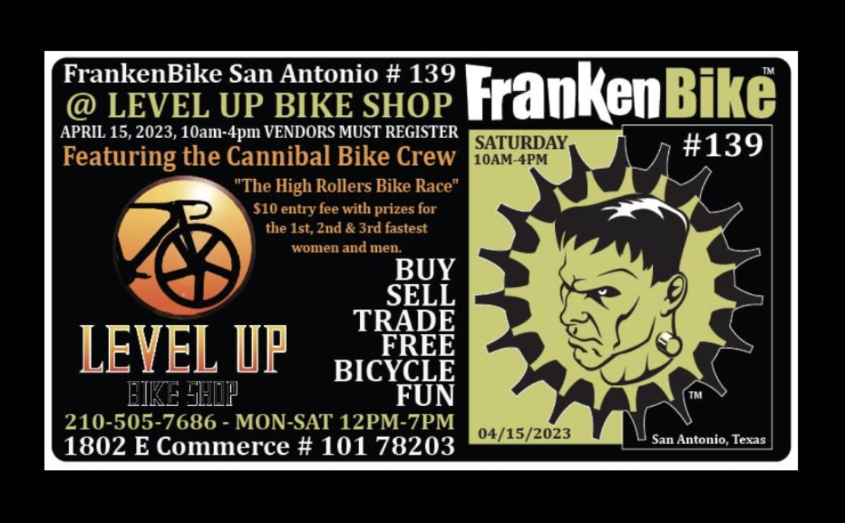 FrankenBike San Antonio #159 - Presented by BikeTexas, Independence Brewing Company, Ruta Maya Coffee and Club Sirius - will be held on SATURDAY, December 21, 2024 from 10am-4pm at TANK'S PIZZA located at 902 N New Braunfels Ave, San Antonio, Texas 78202. ALL VENDORS MUST REGISTER. No Outside Food or Adult Beverages. http://facebook.com/hankspizzasa.comhttp://biketexas.orghttp://independencebrewing.comhttps://rutamayacoffee.com/collections/allhttps://frankenbike.net FrankenBike is […]