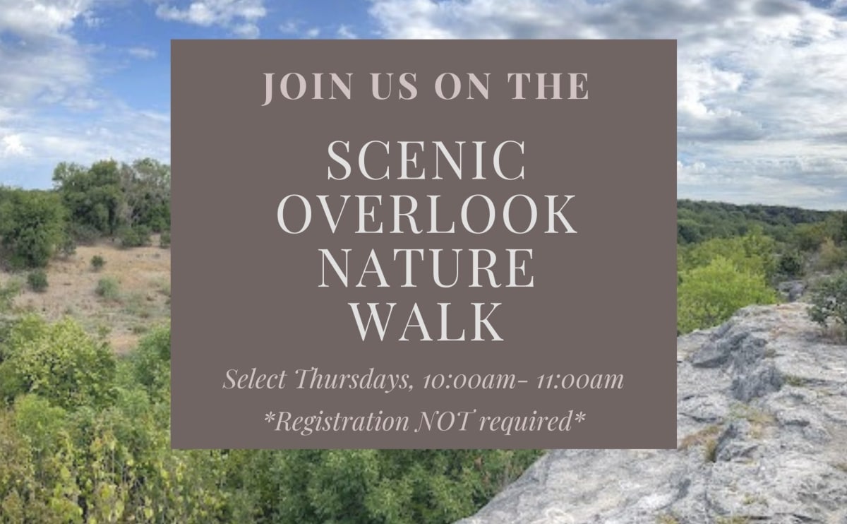 Join us on the first three Thursdays of the month for an easy nature walk with a beautiful view! Join a Texas Master Naturalist to learn about local geological features, the importance of water, and local flora and fauna. This easy trail is less than 3/4 mile long and mostly level with rocky areas. All […]