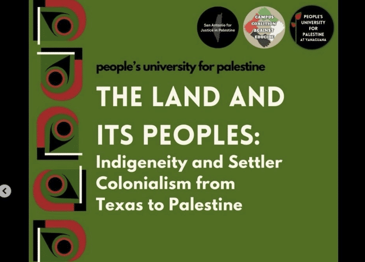 INVITATION: Join us for session #2 of The People’s University for Palestine, titled “The Land and Its Peoples: Indigeneity and Settler Colonialism from Texas to Palestine.” We will meet by a tree located on the side of the park closest to N. Flores Street. Parking is available by the San Pedro Playhouse, entrance through W. Ashby. […]