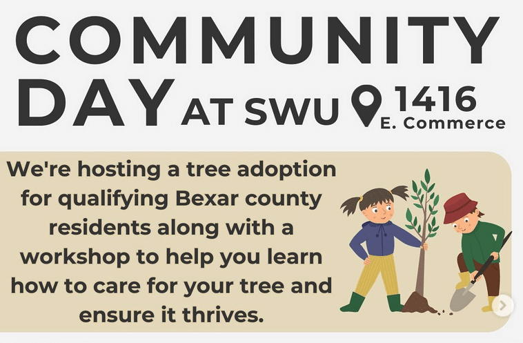 We’re partnering with the Department of Urban Forestry to make our next Community Day extra special! Join us next Saturday, March 15th at 10am at 1416 E Commerce for a Tree Adoption 🌳 We’re giving out trees to combat heat islands in San Antonio. To qualify you must: 1) attend our workshop 2) be a […]