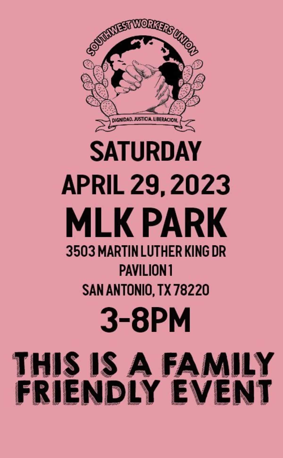 Martin Luther King DPark 3503 Martin Luther King Dr. San Antonio, TX 78220Join Southwest Worker's Union at MLK Park