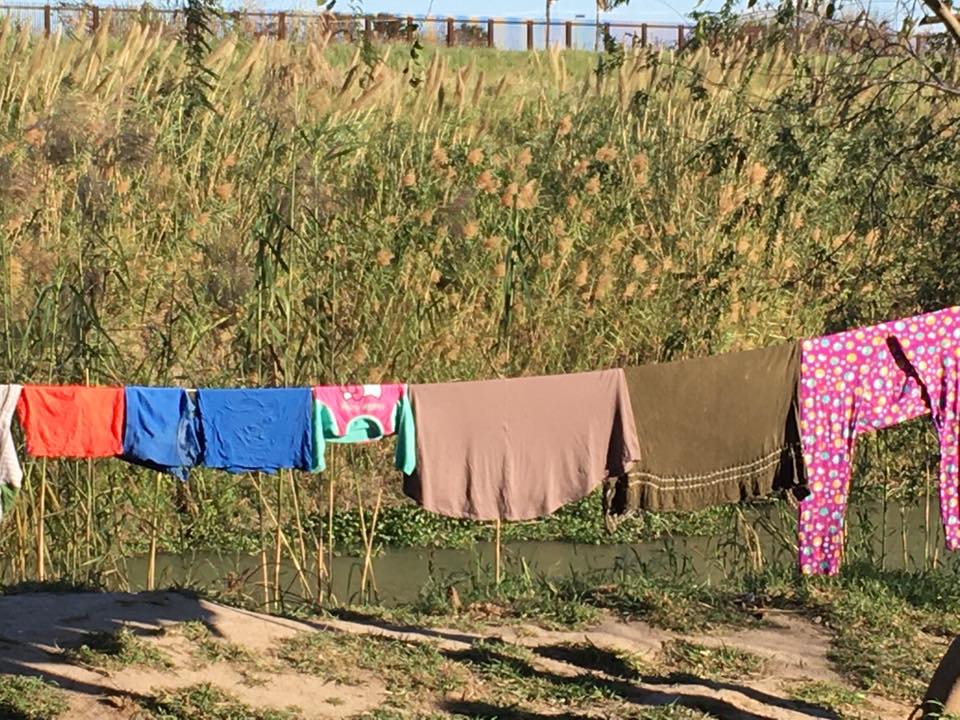 Because, to make it to their next station of the cross, they will have to survive. On the left, to reach the new camp, I scale the levy, and step down into the once-park, the now-home to clusters of tents, many with clay stoves, the smell of wood smoke mingling with humanity. I use my halting Spanish with everyone I meet. I am with someone who is fluent, so it is easier for me. We smile, we shake hands, we say the children’s names as we are introduced.