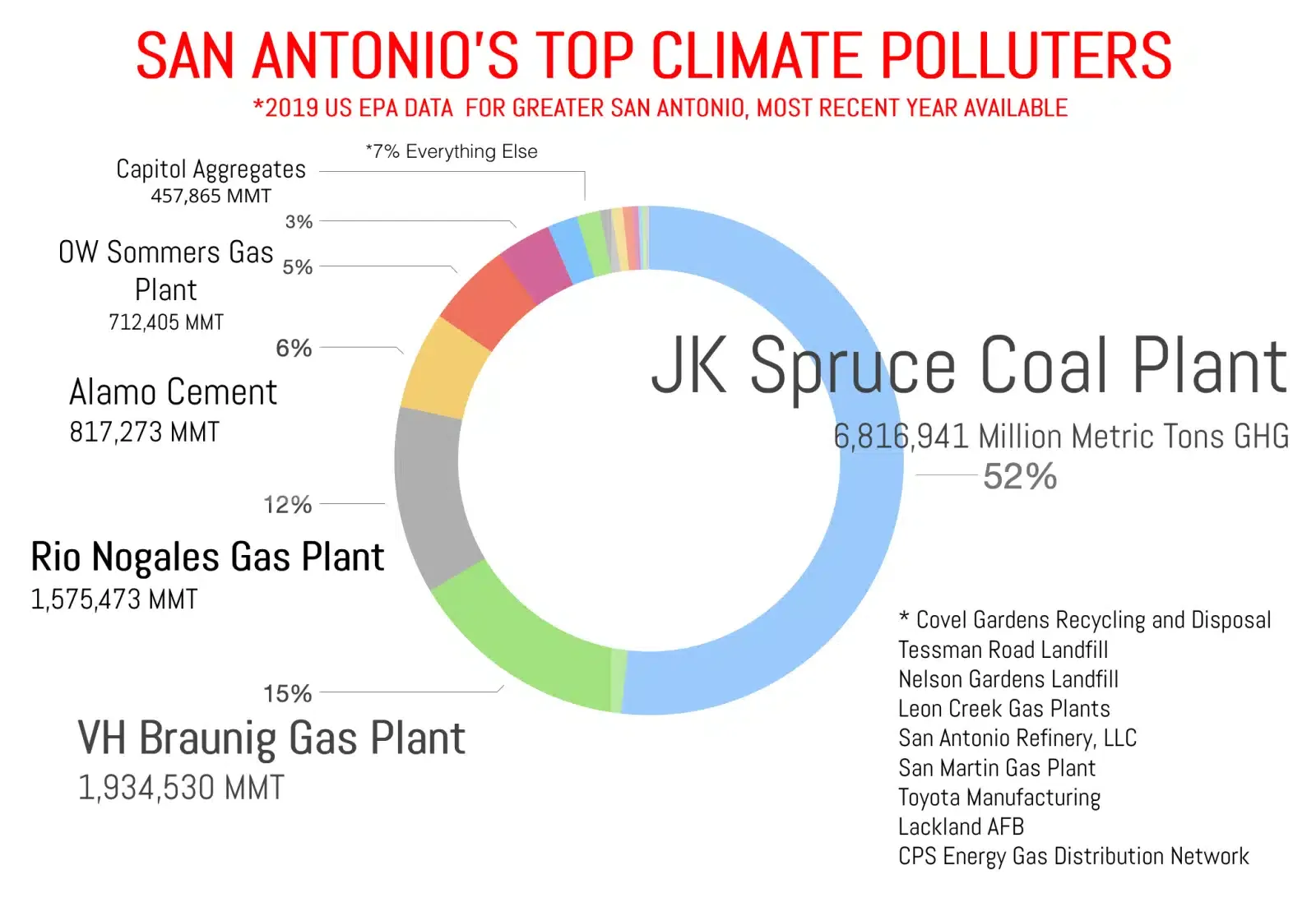 - JK Spruce coal plant alone is nearly a third of all San Antonio’s climate pollution.