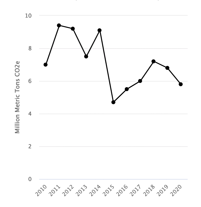 In 2019, the plant released 6.8 million metric tons (mmt) of climate pollution. Spruce emissions slowed during COVID, new numbers from the US EPA show. In 2020, Spruce released about 5.8 mmt of climate pollution. In 2018, Spruce released 7.2 mmt (in addition to since-retired “Dirty” Deely coal plant’s 5.4 mmt).