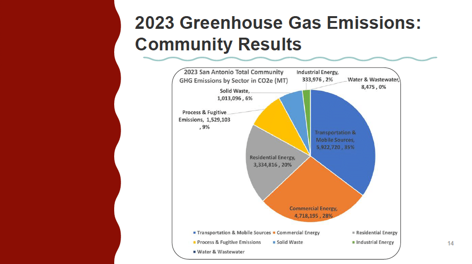 From 2019 to 2021, emissions went down by over 500,000 metric tons of carbon dioxide equivalent, according to an accounting shared in a reconstituted SA Climate Ready Advisory Committee meeting held Monday, October 26. However, reductions proved harder to sustain. Between 2021 and 2023, the most recent year for which federal data is available, those emissions rose from 16,726,424 metric tons to 16,860,381 metric tons.