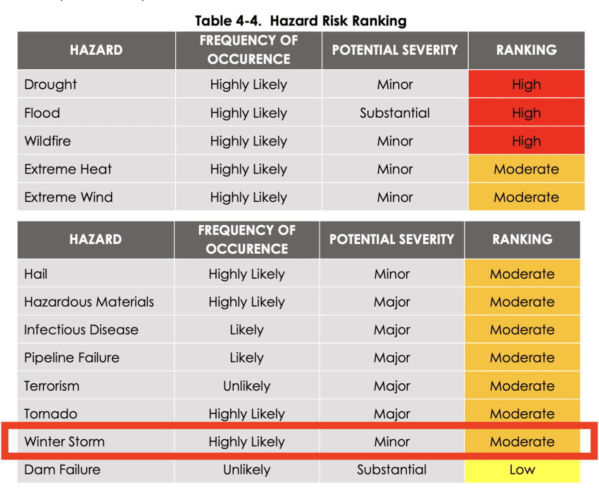 That said, Austin-based consultant H2O Partners Inc., who prepared the report, didn’t actually come anywhere near to predicting February’s dangerous icy blackouts. Despite the near-collapse of the local power grid and much of the water network on account of Arctic weather incursions, H2O Partners assessed the potential severity of winter storms as “minor.” Strange, as this report was prepared only a few years after the last winter state-wide rolling blackouts.