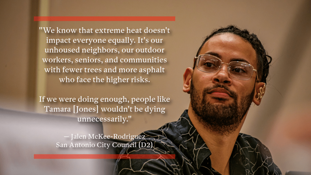 “I think there’s also some synergies that we might want to look at … that can help inform significant plans that we have in our community. … I know there’s already some thoughtful research that’s happening at UTSA, those that are monitoring the temperatures in someone’s house, how that can be higher than what it is outside. But then understanding those communities are probably facing a whole other range of challenges that we might need to account for at the city level.