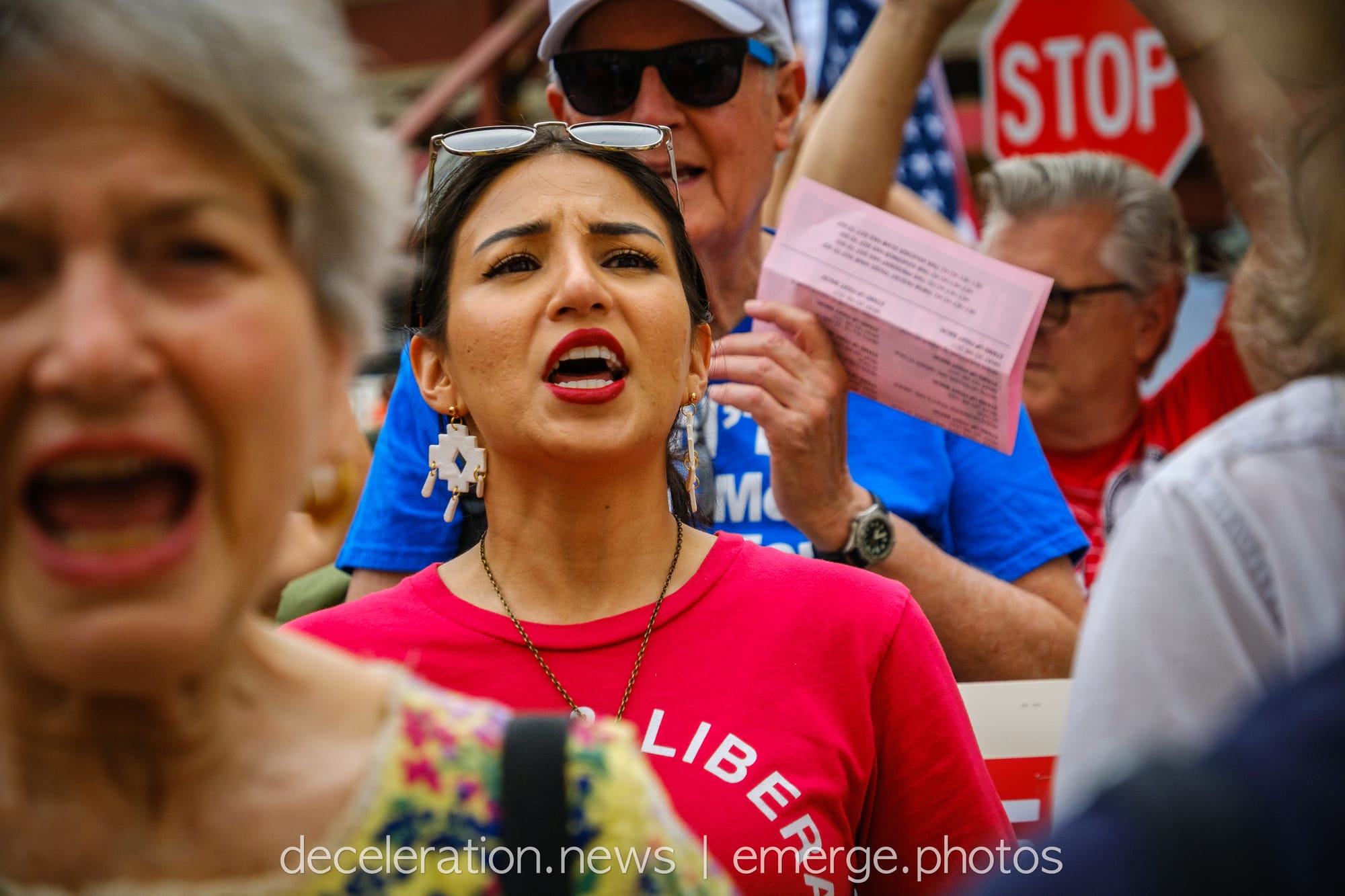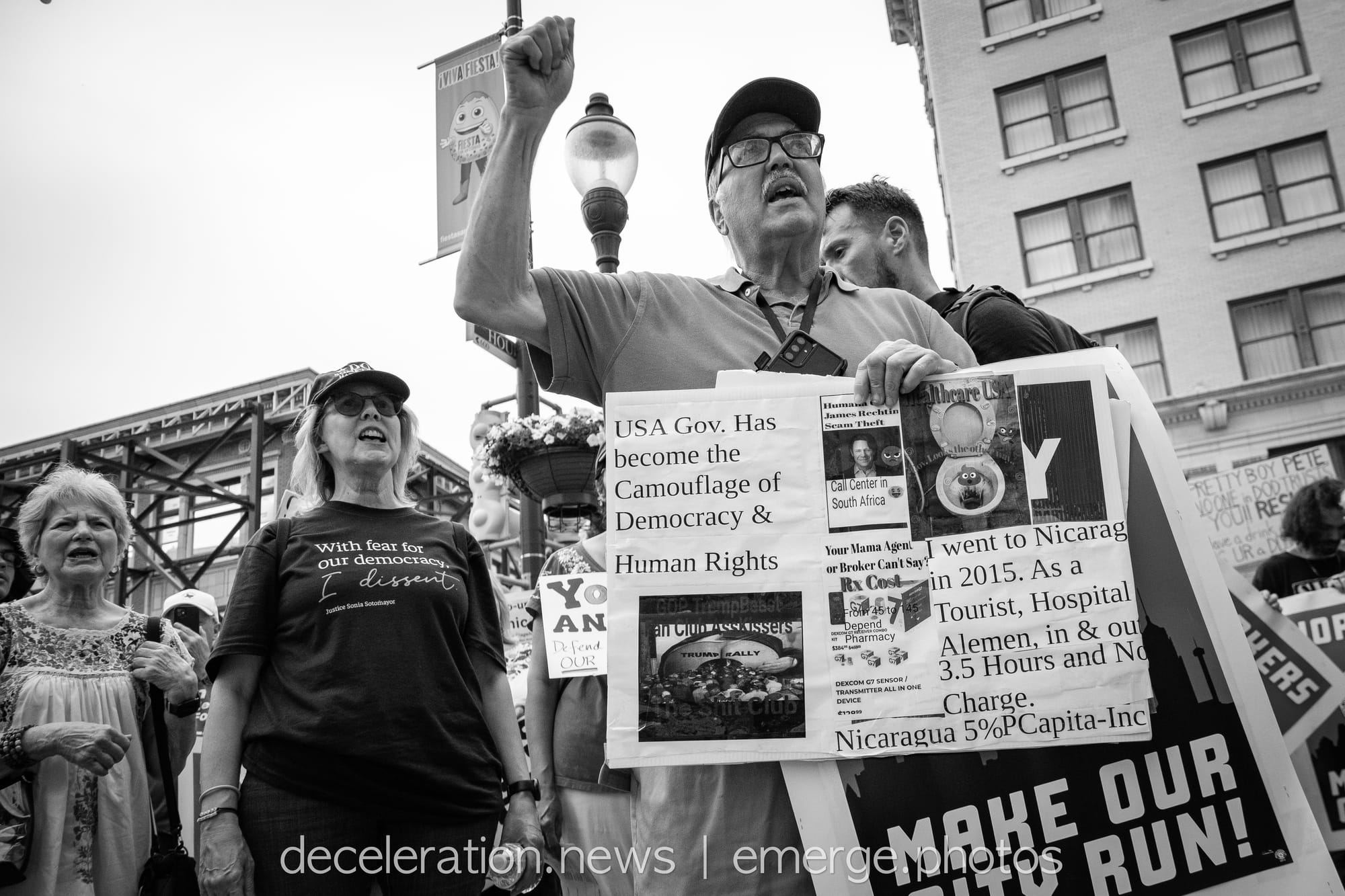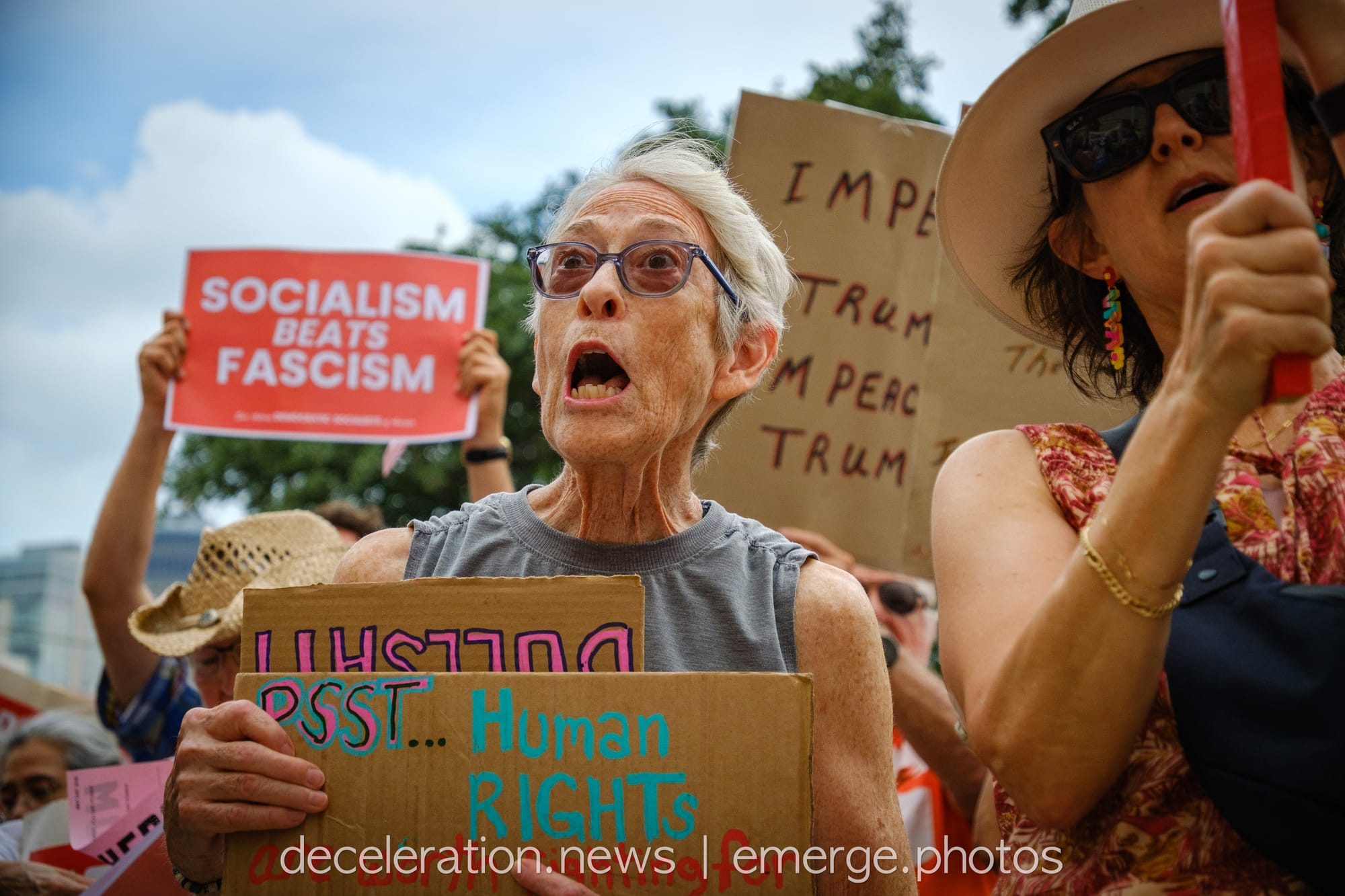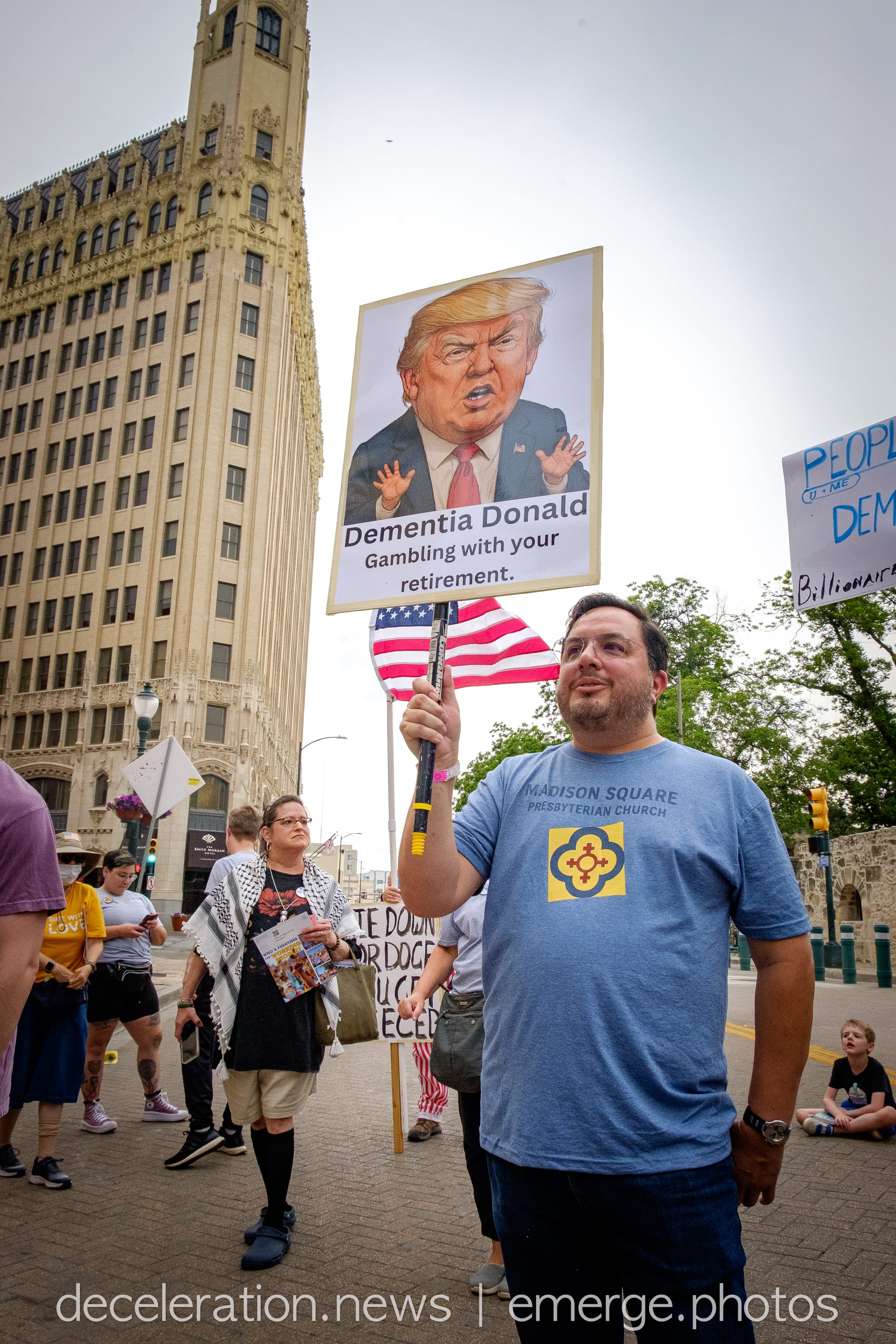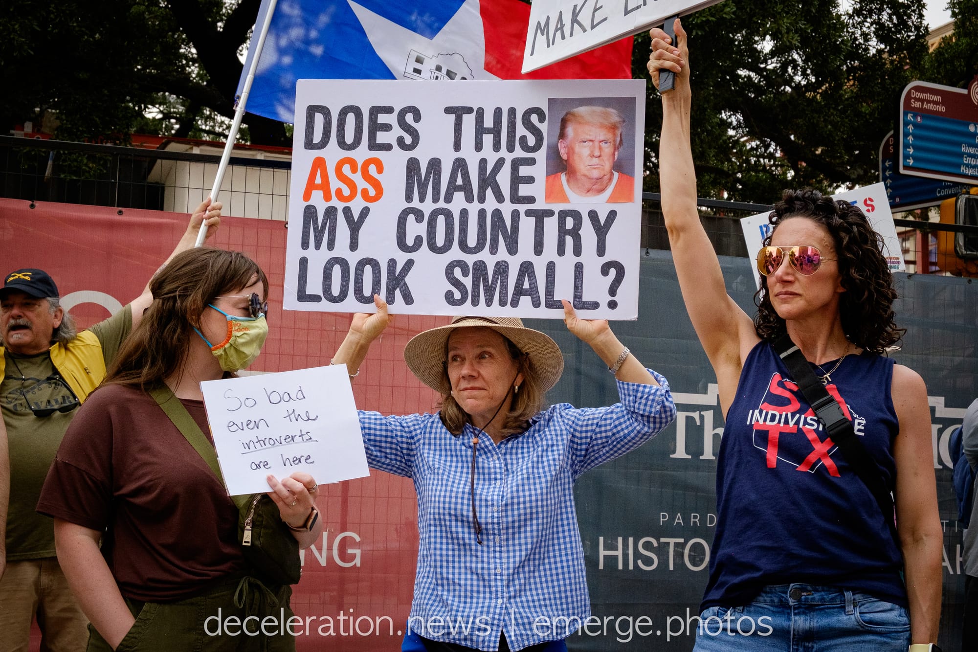 Later that day, between 200 and 300 area residents converged on a downtown federal building adjacent to the storied Alamo (described both as a “Shrine to Texas Liberty” and a “Shrine to White Supremacy“) as part of an ongoing international protests decrying the abuses of the Trump administration and its attacks on federal workers, social service programs, and human rights.