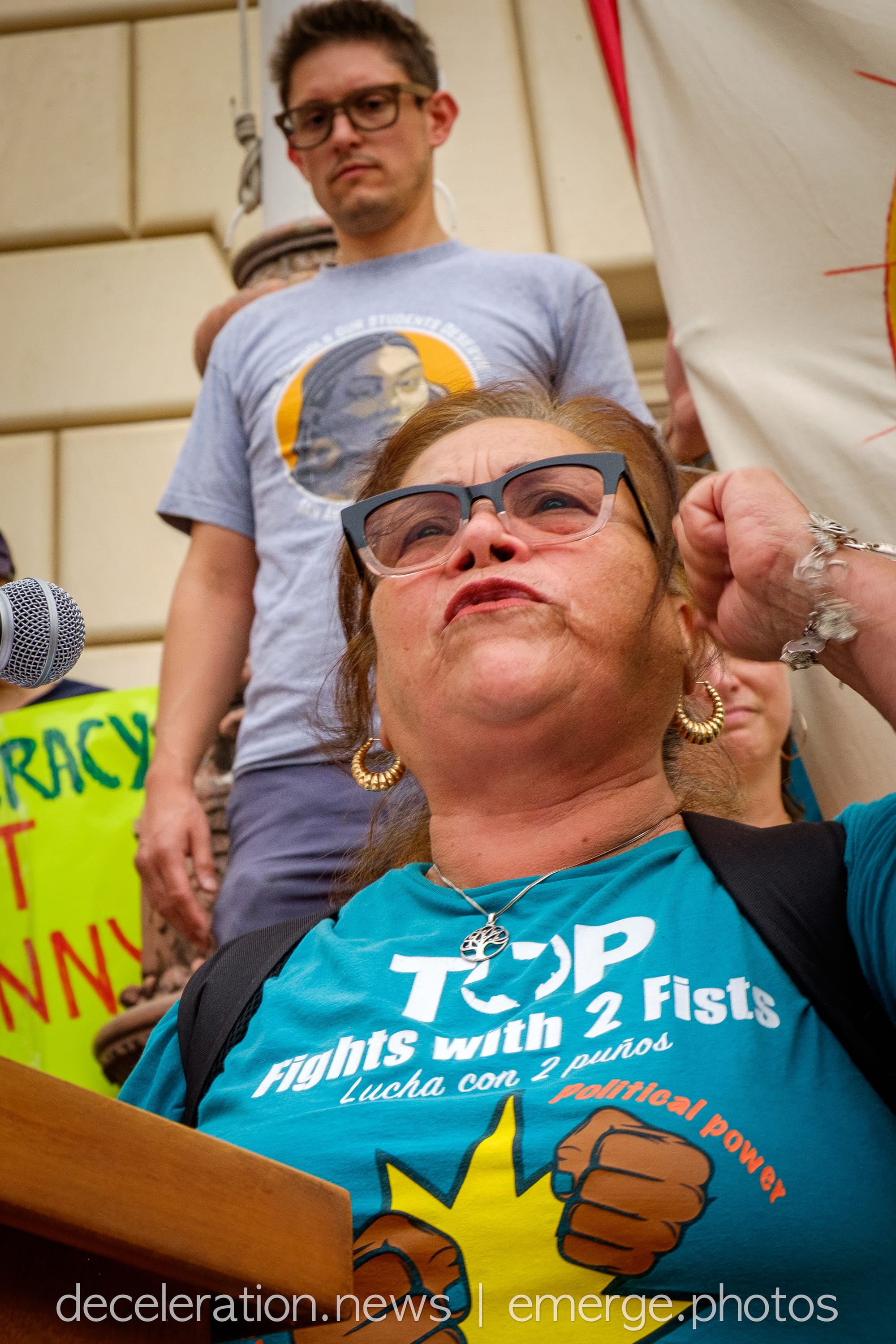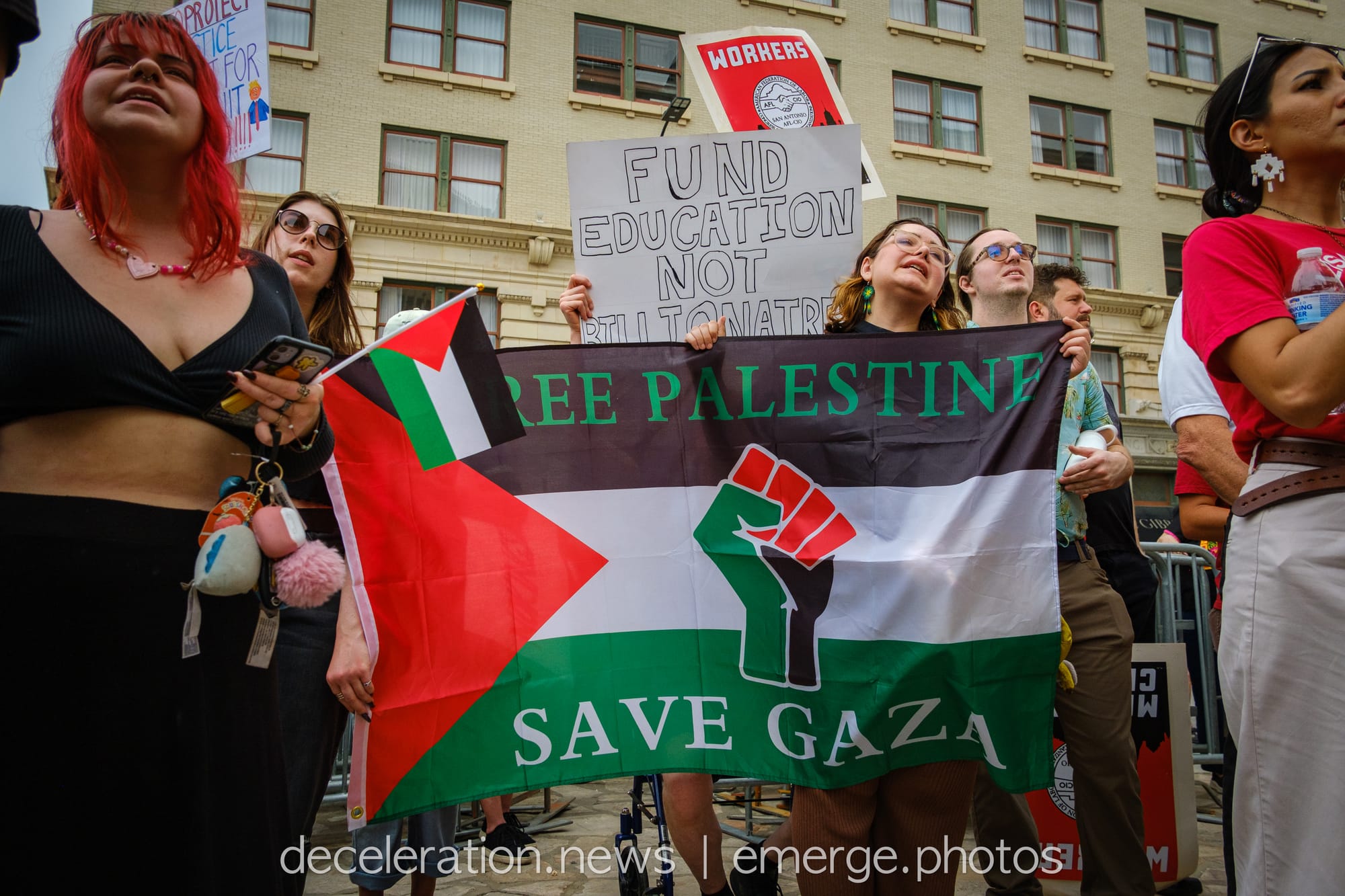 “We must stand united,” Lopez urged. “When they threaten our livelihoods, we must stand united. When they send bombs to Palestine, we must stand united. When they strip our social safety nets to keep us poor and sick, we must stand united.”