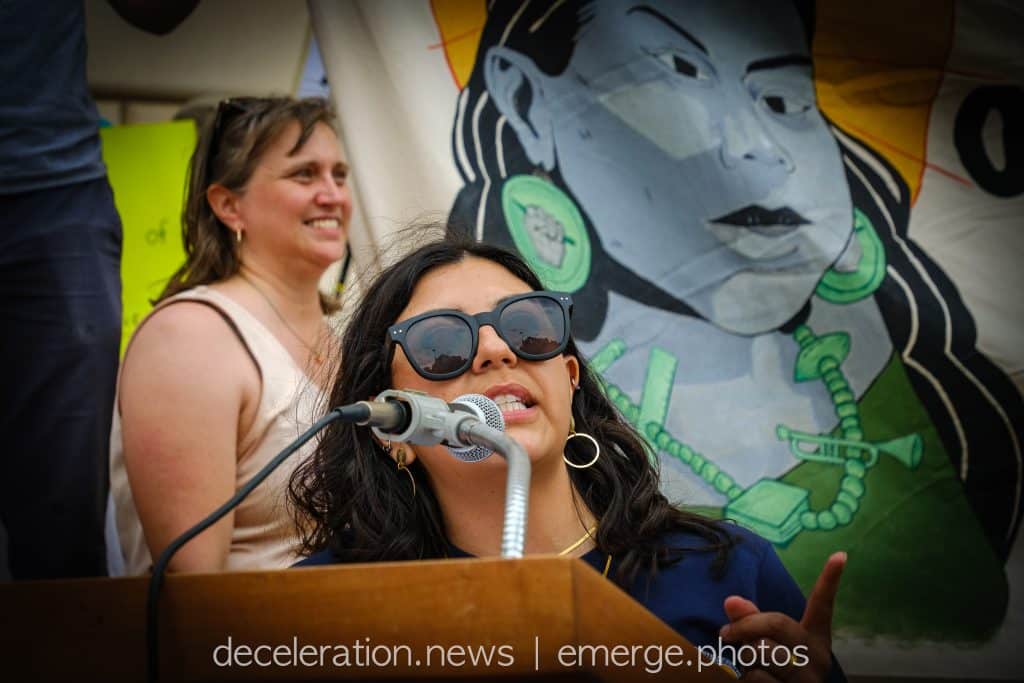 “We must stand united,” Lopez urged. “When they threaten our livelihoods, we must stand united. When they send bombs to Palestine, we must stand united. When they strip our social safety nets to keep us poor and sick, we must stand united.”