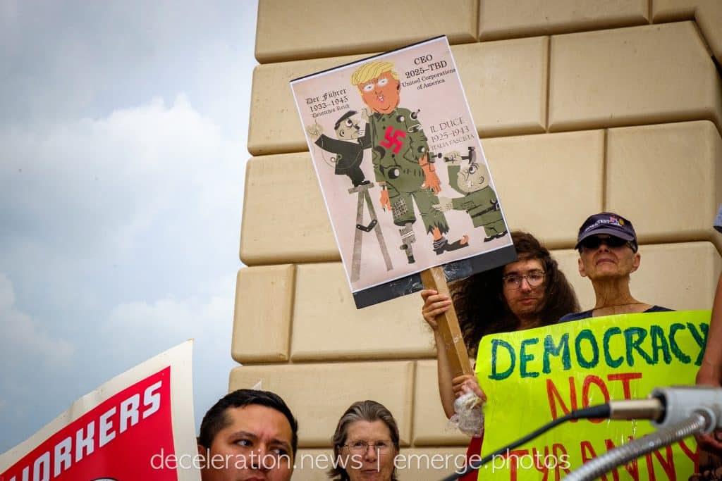 The evening May Day Rally, “People Over Billionaires,” drew on the strength of the nascent 50501 movement, the local AFL-CIO chapter, and established political efforts, such as Indivisible, including other union chapters and organizations.