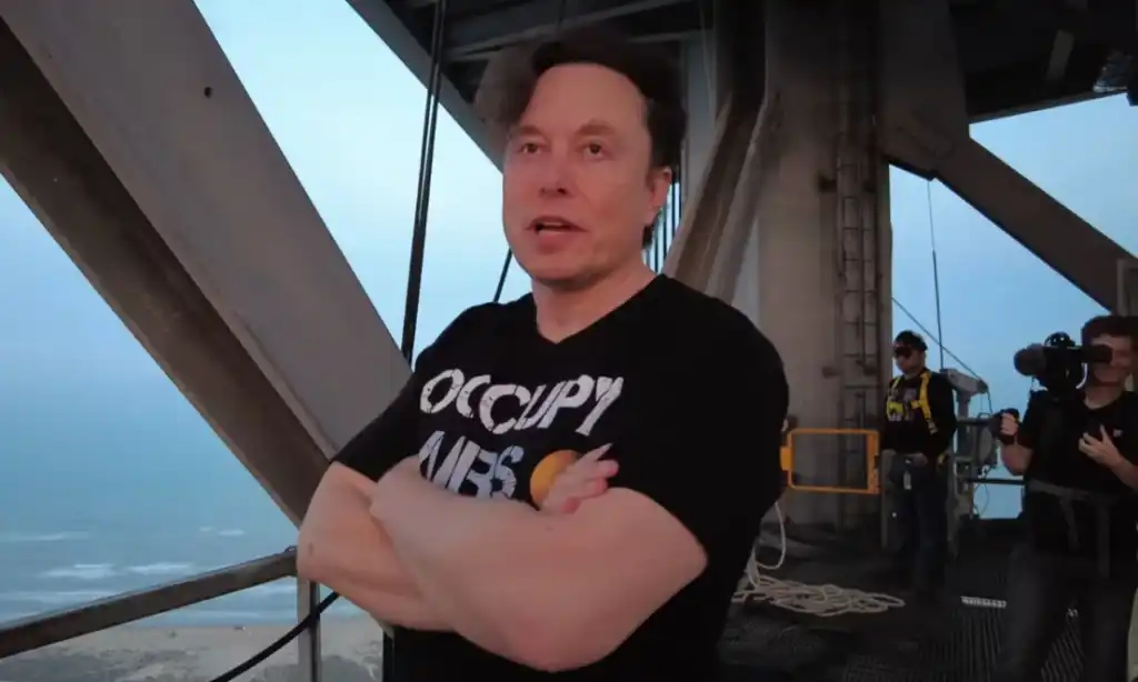 Musk wears a black T-shirt with “Occupy Mars” emblazoned across the front, as if his corporate conquest and colonization of space were some sort of righteous protest.
