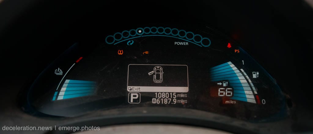 About three months later, someone finally came through via Facebook posting. I got my $5K, turned around and gave it to Jim, and became the driver of a first generation Nissan Leaf with a range that was tiny but still ample enough to get me around town, so long as I stuck mostly inside Loop 410. I can get to 1604 and back, but I’m sweating and biting my nails the entire time, hoping I have enough mileage to make it back home.