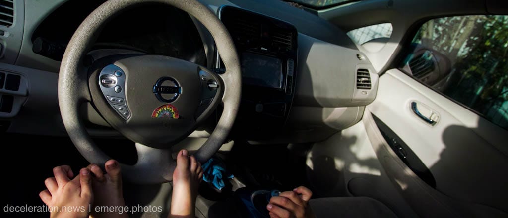 That’s cool! So on a macro level, since Deceleration is focused on climate issues, right—climate justice, environmental justice—can you talk a little bit about what role you think transportation plays in climate solutions? Should we be trading our cars for electric vehicles or bikes? Or, I’ll put it this way: should we be trading our cars for EVs, or should we be moving away from cars altogether, towards bikes, electric bikes, rail, depaving roads, re-greening cities? Just your thoughts on that, since you’re so heavily into thinking about vehicles?