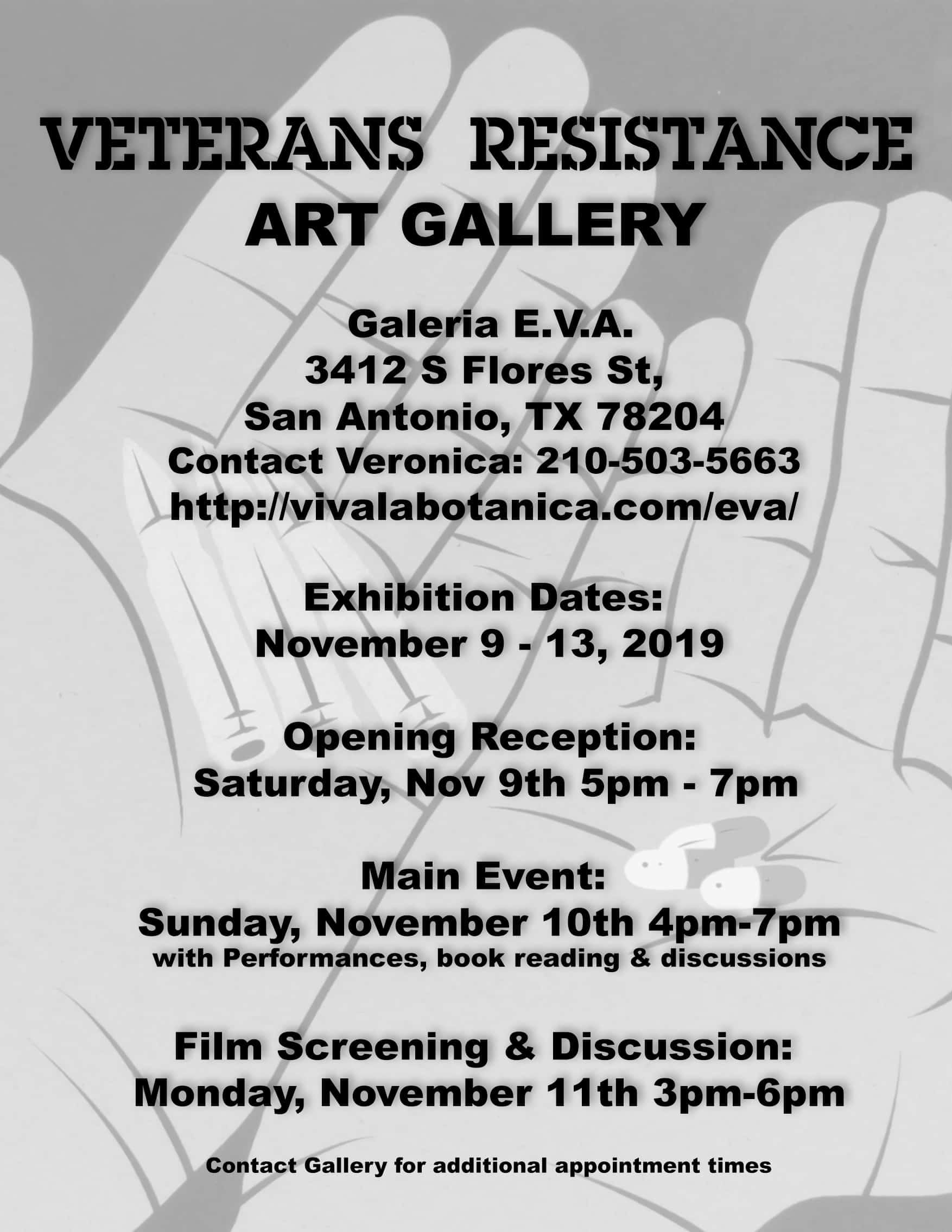 Exhibit and events take place at Galeria E.V.A., located at 3412 S Flores St, San Antonio, TX 78204. To schedule additional visits to view exhibit, contact the gallery at http://vivalabotanica.com/eva/ or call (210) 503-5663 or (210) 737-4206.