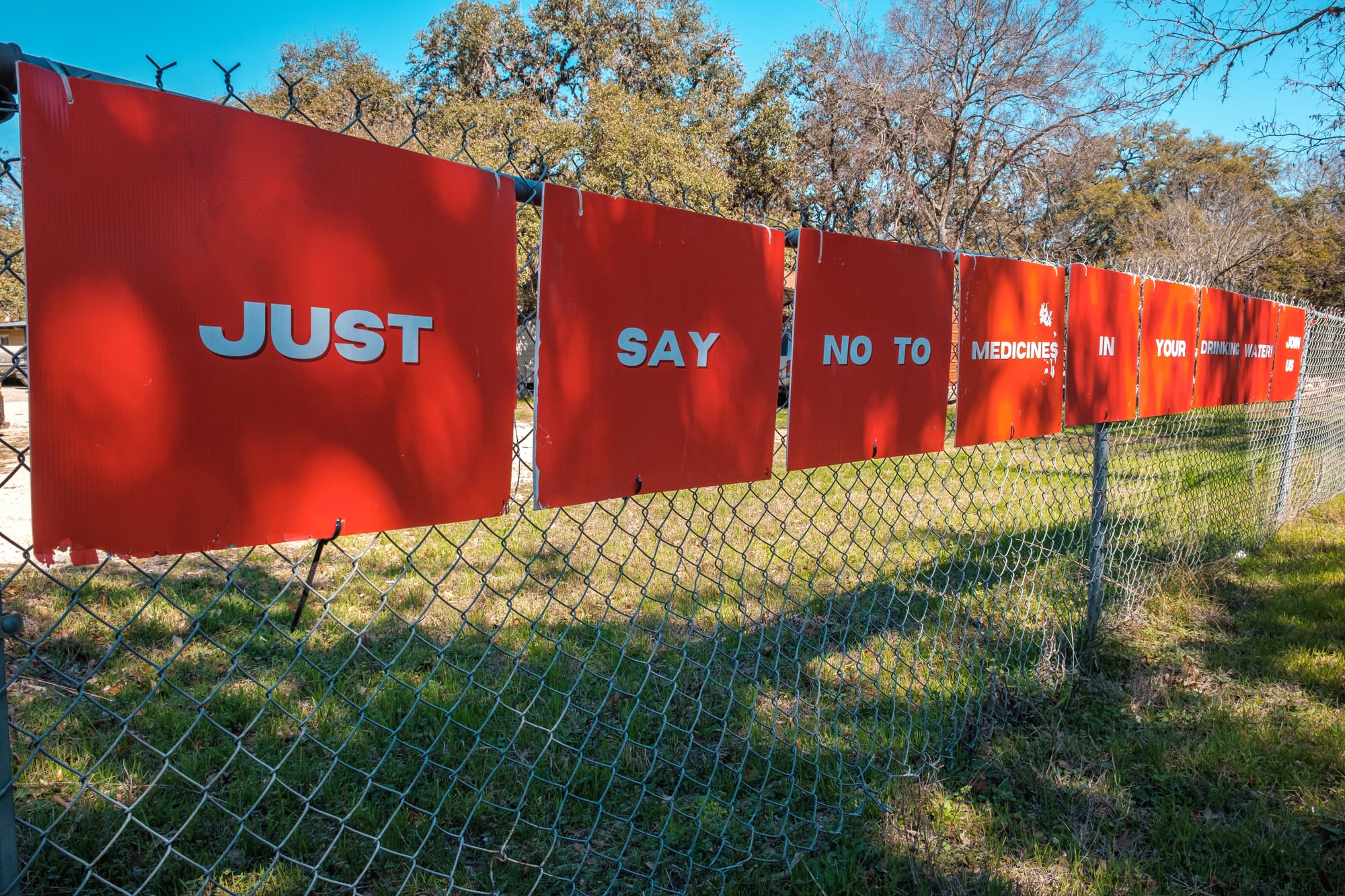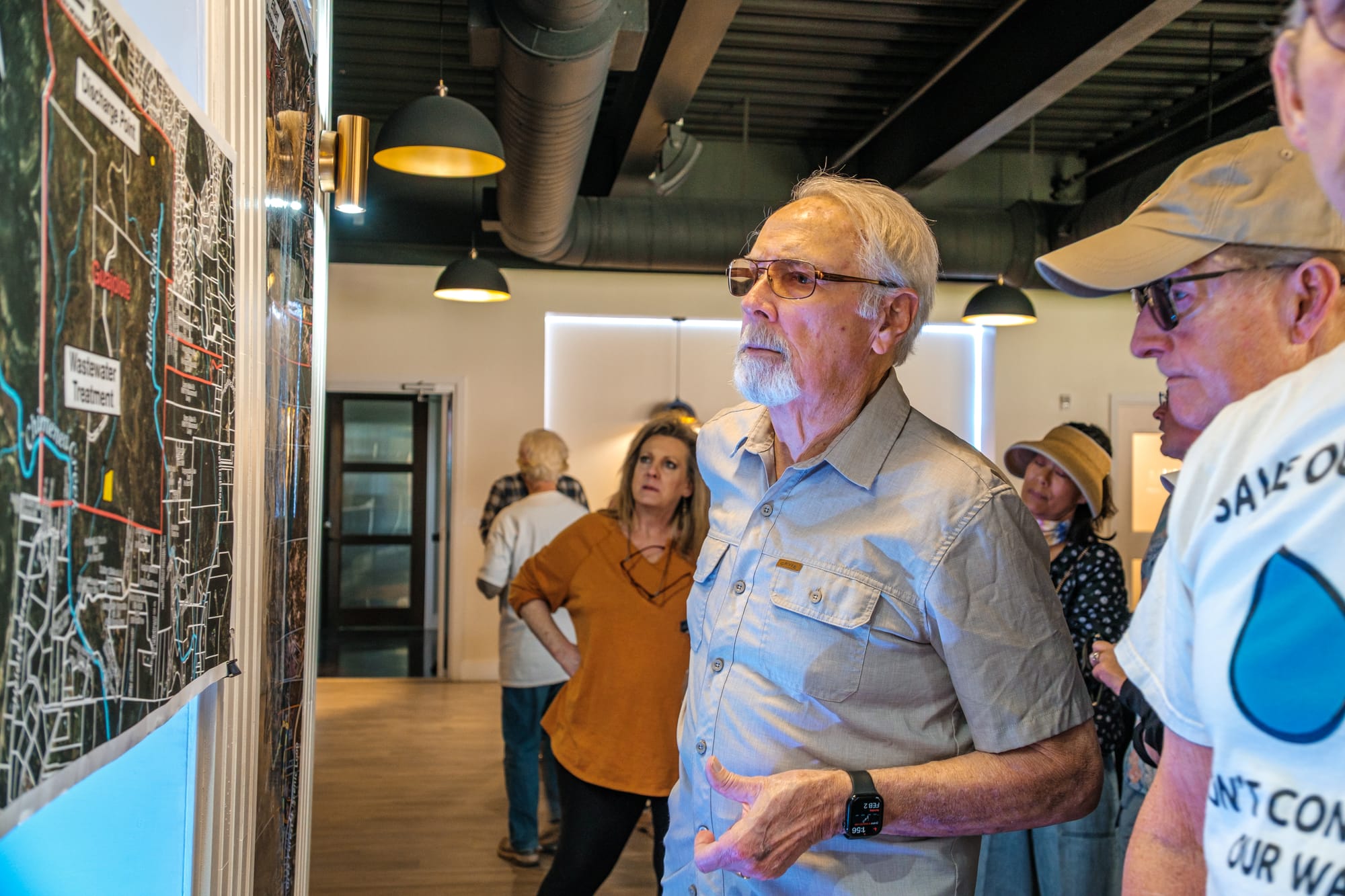 Studying maps of the Guajolote Ranch development in February 2025, including an installation outside Grey Forest City Hall reading: ‘Just Say No to Medicines In Your Drinking Water. Join Us.’ Images: Greg Harman