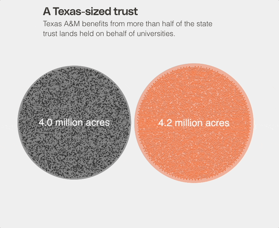 More than half of the acreage uncovered in our investigation appears in oil-rich West Texas, the equivalent of more than 3 million football fields. It benefits Texas A&M.