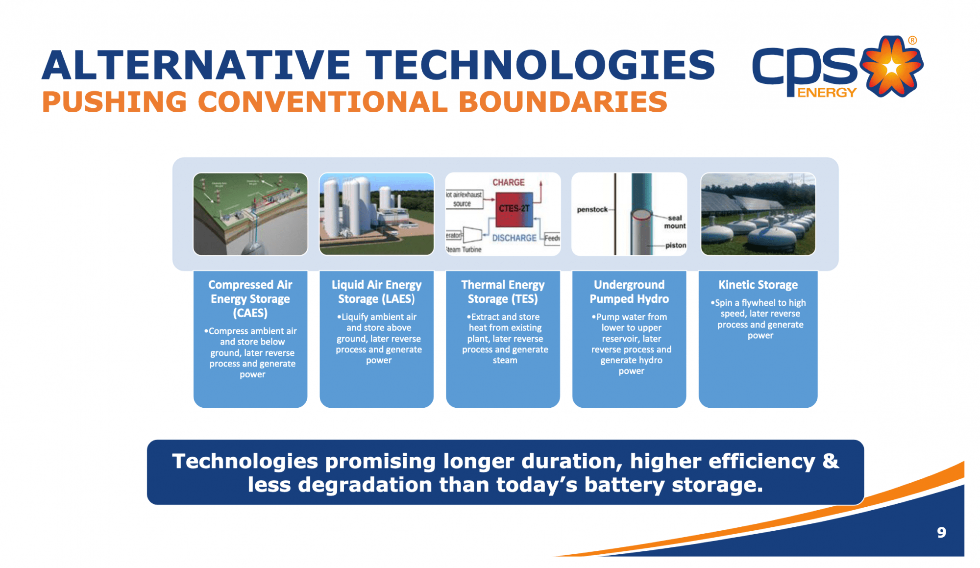 That said, as shown in the chart presented to the CPS Energy Board of Trustees above, more (seemingly) benign options exist. Liquid air batteries, like a UK model under development that promises five hours of storage or its US counterpart shooting for eight, create energy by first turning air to a liquid before converting that liquid back to drive combustion-free turbines.