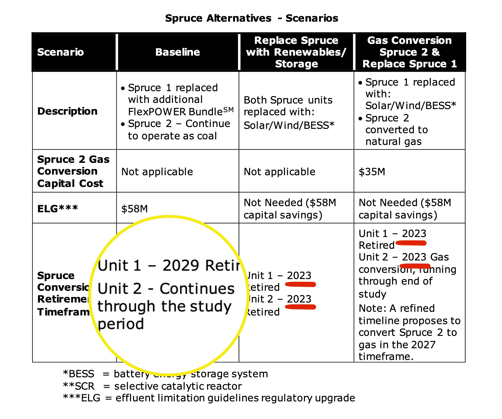 That CPS’s numbers should favor the dirtiest scenario is surprising given that utilities around the nation are running-not-walking away from climate-destabilizing coal. It’s true that the second Spruce unit is only a decade old with a load of debt hanging on it. But two fairly recent studies took that into account and still concluded that closing the plant is the winning economic play in most cases. (See 2019’s “An Updated Look at the Economics of the JK Spruce Power Plant” by Synapse Energy Economics, prepared for the Sierra Club.)