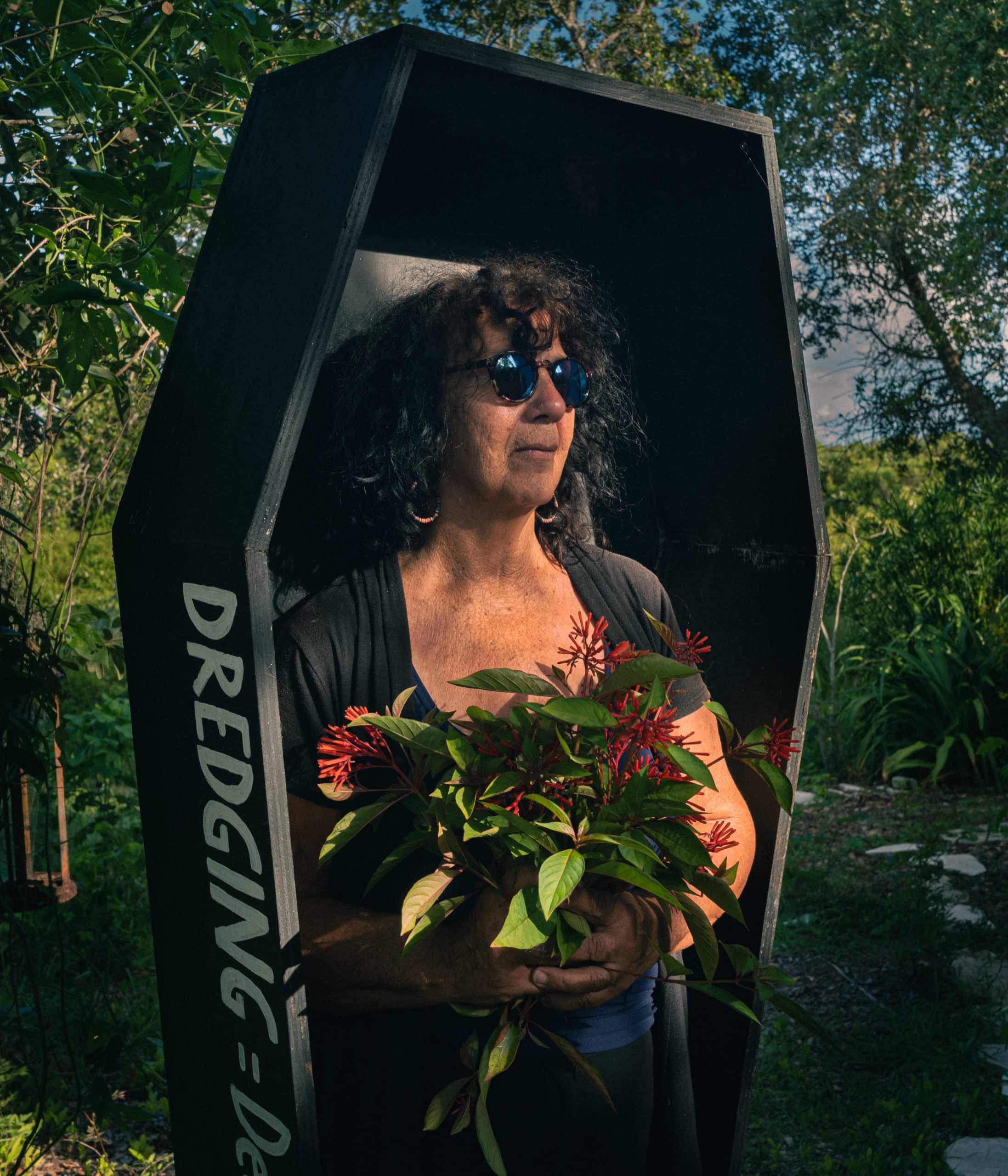 After the hunger strike failed to get the federal government’s attention, Wilson drove up to the Army Corps’ office in Galveston with a fake coffin in tow. On the side, she had painted in tall white letters “Dredging = Death to Matagorda Bay.” After being arrested for civil disobedience at the government building, she says she still has the coffin, which she plans to take out to the bay near Max Midstream for another protest sometime soon. “I like Biden. I think he’s a 100 percent improvement,” Wilson says. “But I’m not sitting here waiting on him to solve this for me.”