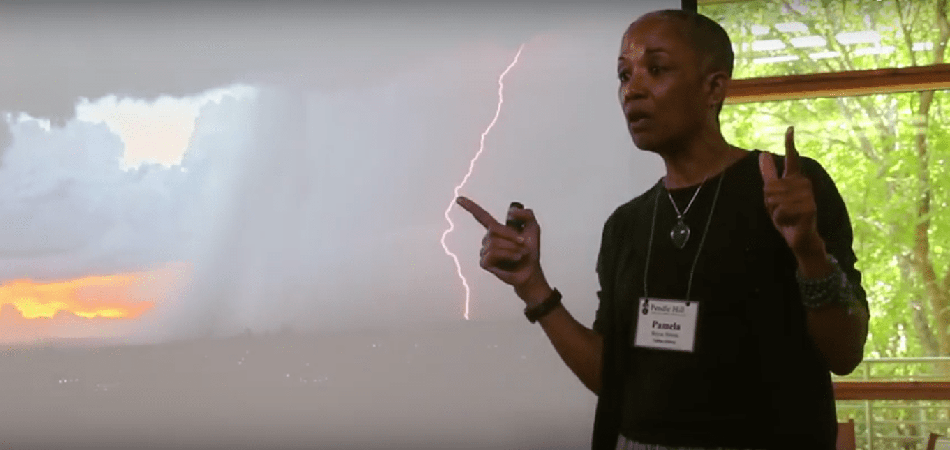 Last weekend, Deceleration ventured up the road to San Antonio’s Quaker Meeting House to attend a talk by Pamela Boyce Simms called “Rekindling the Fire of Fox: Climate Change and the Spiritual Way Forward.” We had gotten wind of this talk at a meeting on climate organizing in San Antonio, where we had picked up a flyer describing Boyce Simms as “an engaged Eco-Buddhist” who “works to transform anger and despair into compassion toward neighbors, communities, and the environment.” Given Deceleration‘s concern not just with questions of climate justice but with the affective (or inner/emotional) work required to sustain effective action in the face of mounting climate and social crises, we were intrigued.