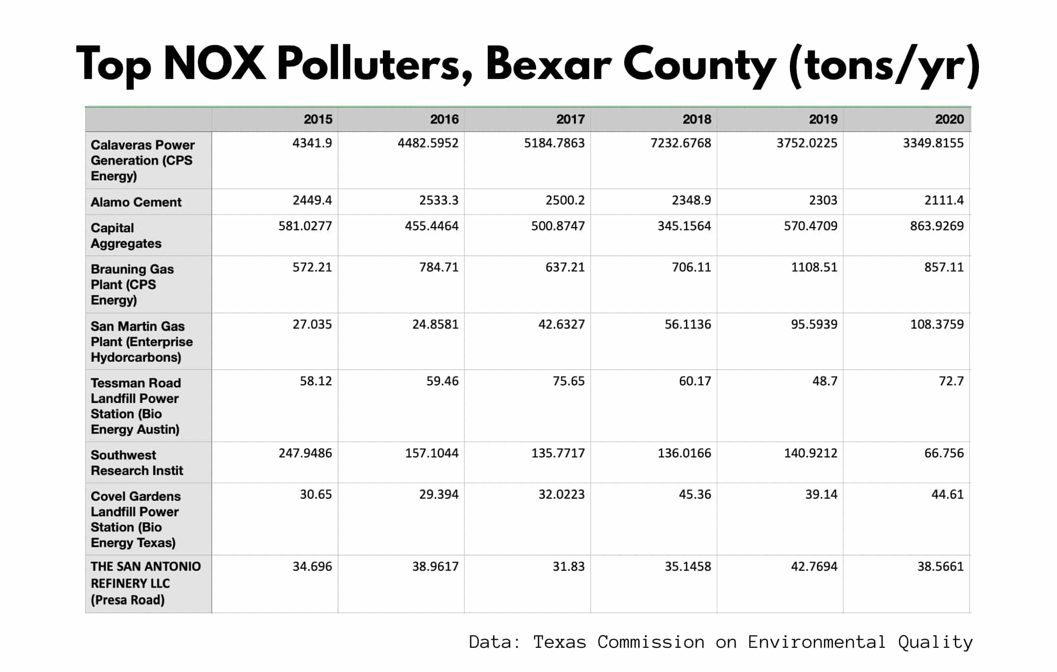 While most of the pollution responsible for local conditions comes from outside the area, local industry and fossil-fuel driven cars and trucks collectively have a significant impact. Some polluters, a Deceleration review of state emissions data show, contribute far more than others. And most pollution levels didn’t go down after San Antonio started scrambling in 2015 to keep from falling into noncompliance.
