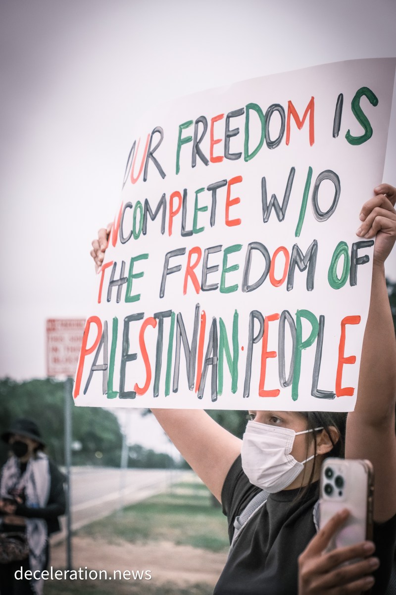 On Monday morning, activists caused traffic delays in San Antonio when they shut down entrances to Valero Energy’s headquarters—both off the Loop 1604 access road and at UTSA Boulevard—as a part of the A15 international day of action for Palestine. The demonstrators joined thousands of others around the United States in an effort “to coordinate a multi-city economic blockade… in solidarity with Palestine.” Other actions included shutting down the Golden-Gate Bridge and delaying traffic at O’Hare International Airport.
