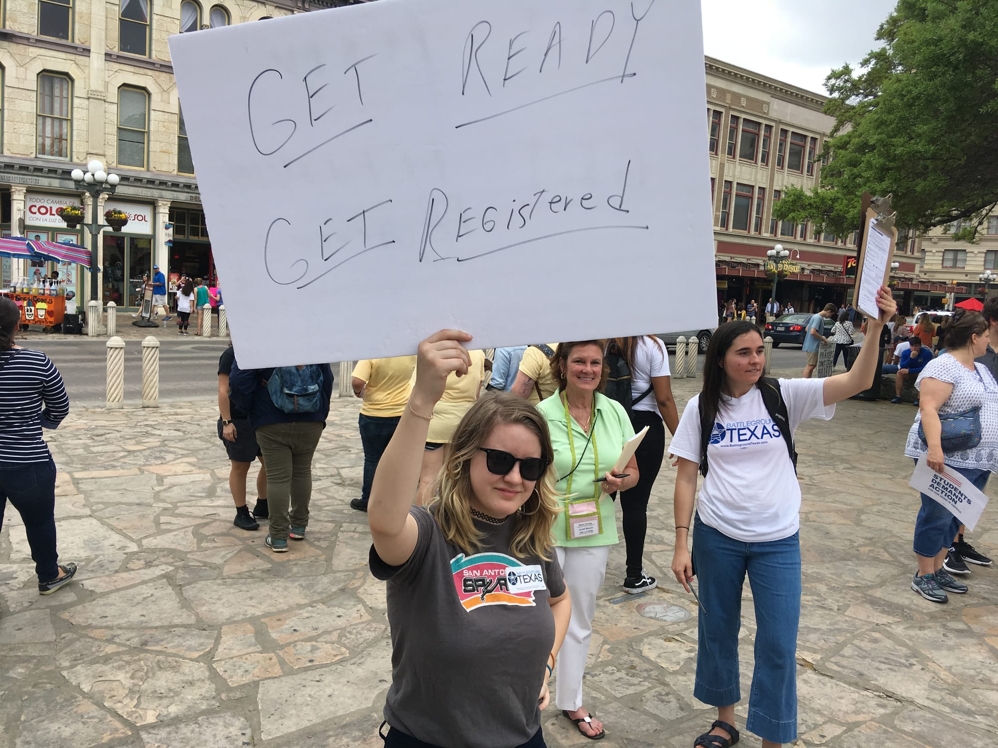 Students of San Antonio area schools made a powerful stand on the steps of City Hall today as part of the international March For Our Lives movement. With signs spread across the steps of the building, students from elementary to high school age, teachers, parents, and grandparents made their demand clear: elected leaders must start prioritizing their lives over the corrupting power of the gun lobby—or suffer the consequences in future elections.