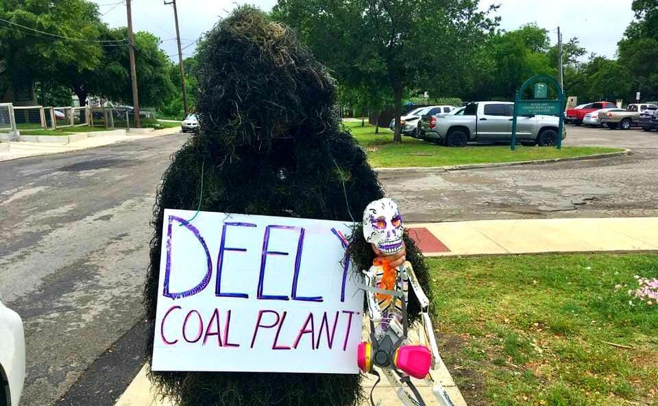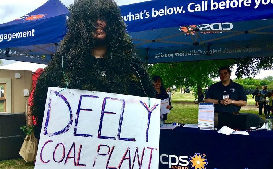 San Antonio coal plant “Dirty” Deely made an unexpected appearance at Earth Day San Antonio this year. The sooty mass of cancer-causing smog was received warmly by all. There were many photos to pose for, including with one asthmatic who requested to be chocked by the aging death-dealing Deely.
