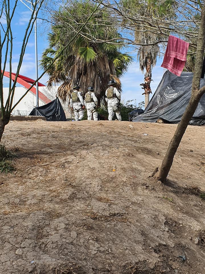 Heavily armed Mexican marines in the camp making a show of their strength because T [Trump] has pressured the Mexican government to do this. To terrify helpless/hopeless people.