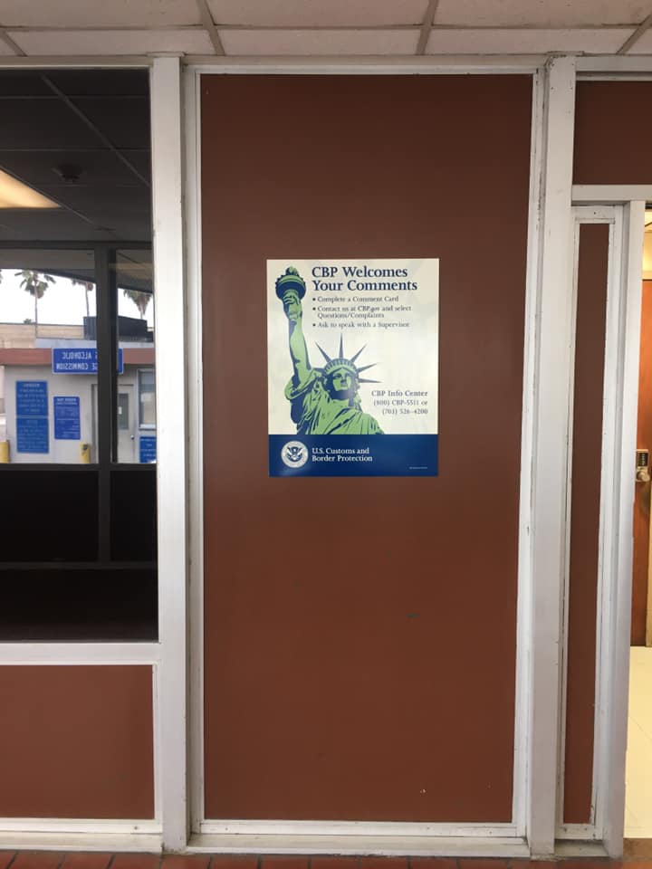Here is a photo taken about 20 feet from where the children were being processed by border patrol. The CBP sign says, “CBP welcomes your comments” and shows a picture of the Statue of Liberty. Comment line is 800-CBP-5511.