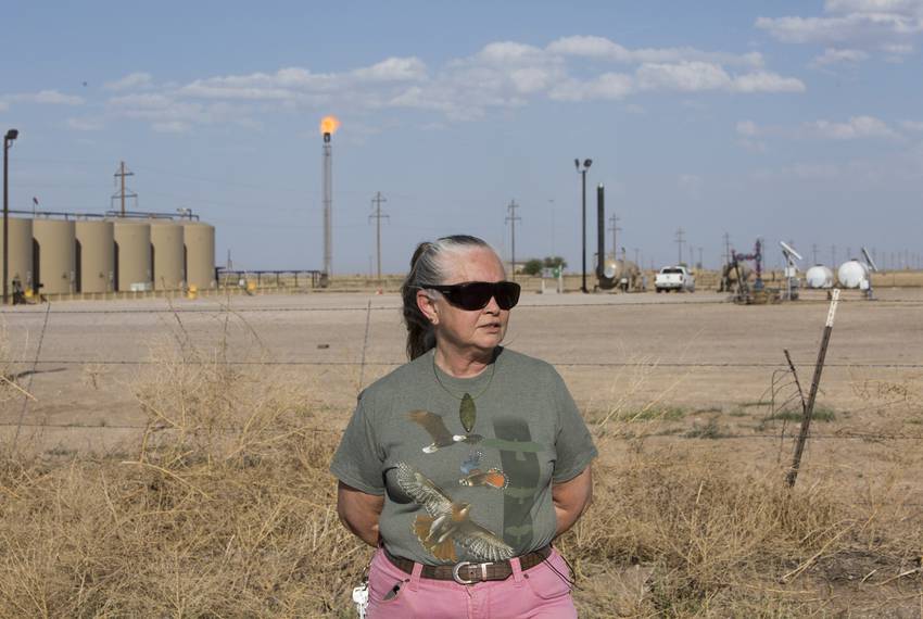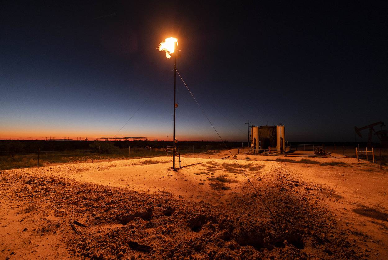 Sites flaring natural gas — a fossil fuel hitchhiker that comes up with the oil here — are everywhere in the region. The endless flicker of small, yellow flames pumping out greenhouse gases alarms Wilson as she roams the Permian. “I can’t even stress what a huge emergency it is out there,” she said. “This impacts everyone on the planet.”