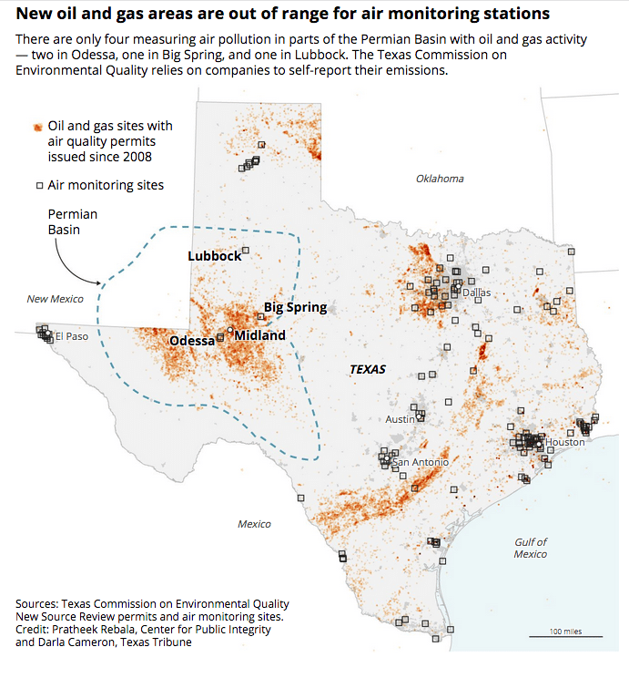 Texas regulators, long criticized for being too industry-friendly, seem wholly unprepared for what’s happening. Booms, predictably, bring air pollution, oil spills, groundwater loss and contamination. But the state isn’t tracking or policing these problems aggressively. For example, the Texas portion of the Permian — roughly the size of Georgia — has only a few air pollution monitoring stations, leaving residents largely in the dark about what’s in the air they breathe.